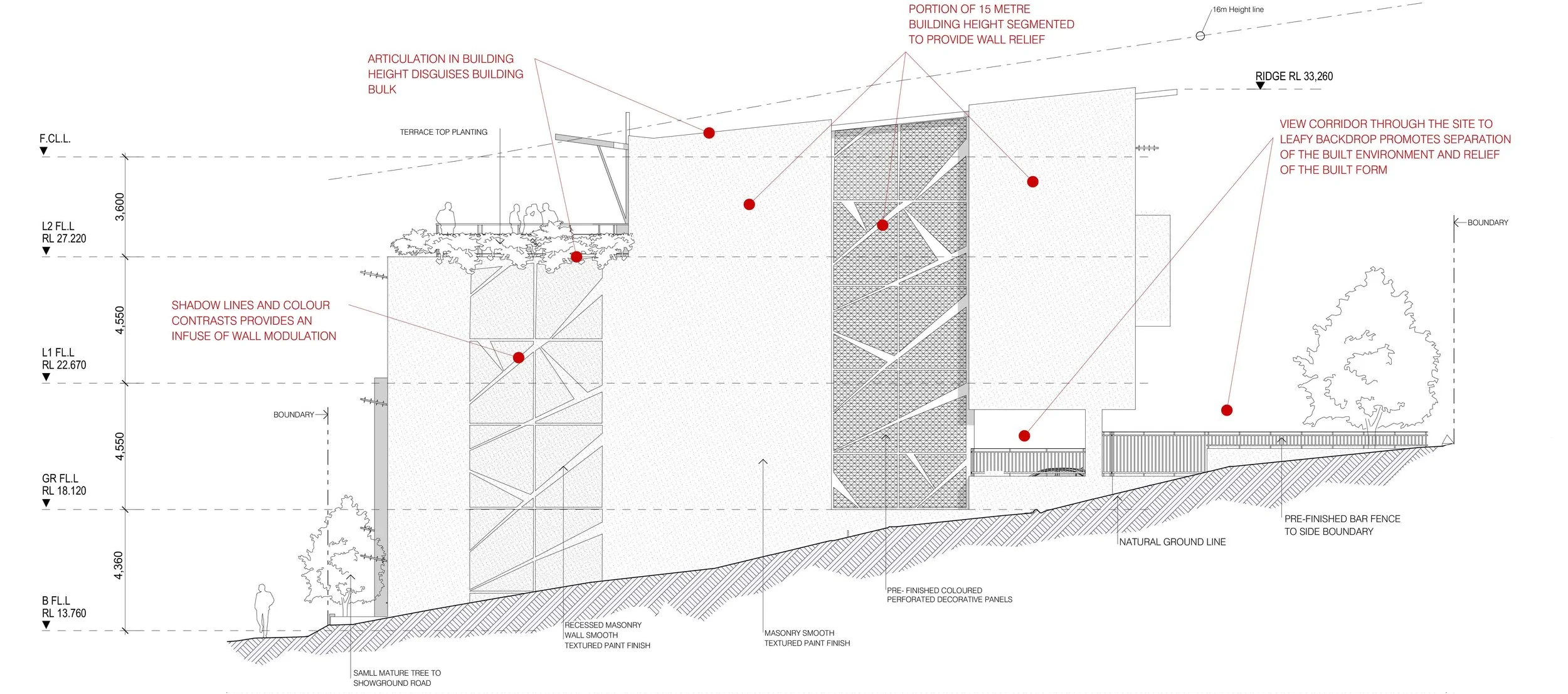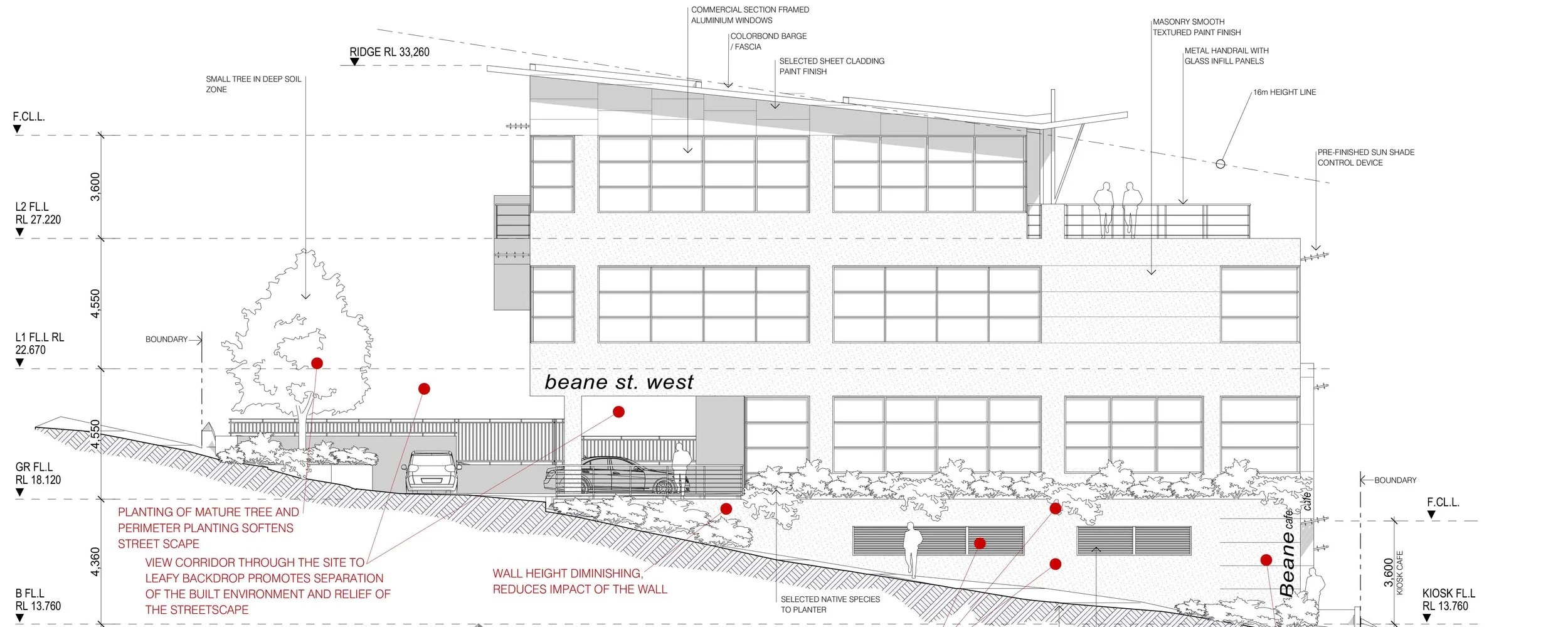 Engaged by the owner/ medical practitioner with a challenging vacant corner site the brief required the design of a four storey commercial building incorporating basement parking. The scope included design of a modern radiology tenancy situated at ground level with associated tenable commercial levels connected by a service lift core and associated accessible amenities. The building encompassed a café, multiple terrace areas and extensive glazing capturing the distant bush setting views that included Presidents Hill and Rumbalara Reserve.