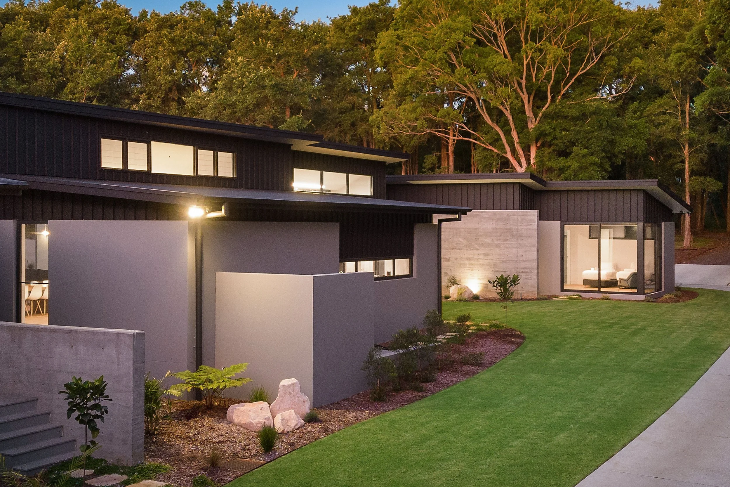 Approached by the client with the desire to create an oasis within the natural setting. The contemporary design captures its native landscape surroundings with direct access from numerous living spaces that include raked ceilings and generous glazing to create a sense of space that captures direct sun light all year round. The home comprises 6 bedrooms all with ensuite, open plan living with a large modern kitchen / scullery encompassing a 6.2 m long super white marble top island. All living spaces embrace the fully landscaped grounds and expansive porcelain tiled pool terrace. The design also features a rumpus/ games room with wet bar, gymnasium, first floor home office and media room plus a secured 4 car garage with internal access.