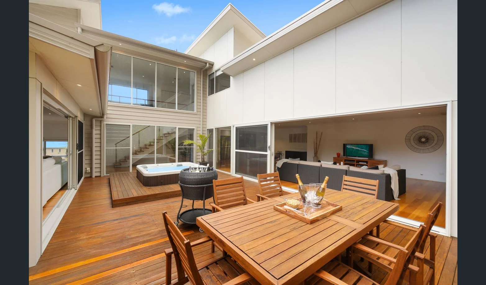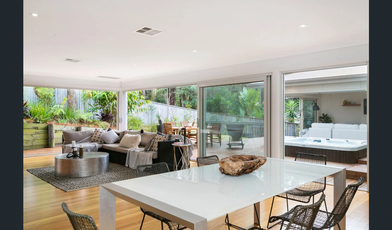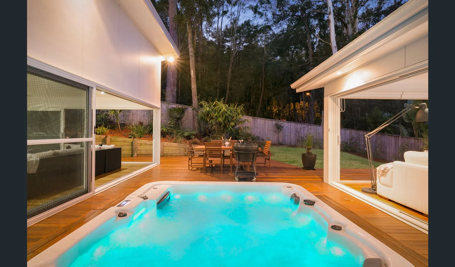 This elevated two storey design achieves an open plan living space with distant panoramic Brisbane Water vistas, whilst simultaneously connecting with the native landscape setting. Providing a private central courtyard directly linked to the living spaces with extensive glazing providing an indoor, outdoor link. Along with an inbuilt spa, this creates an expansive entertaining area.