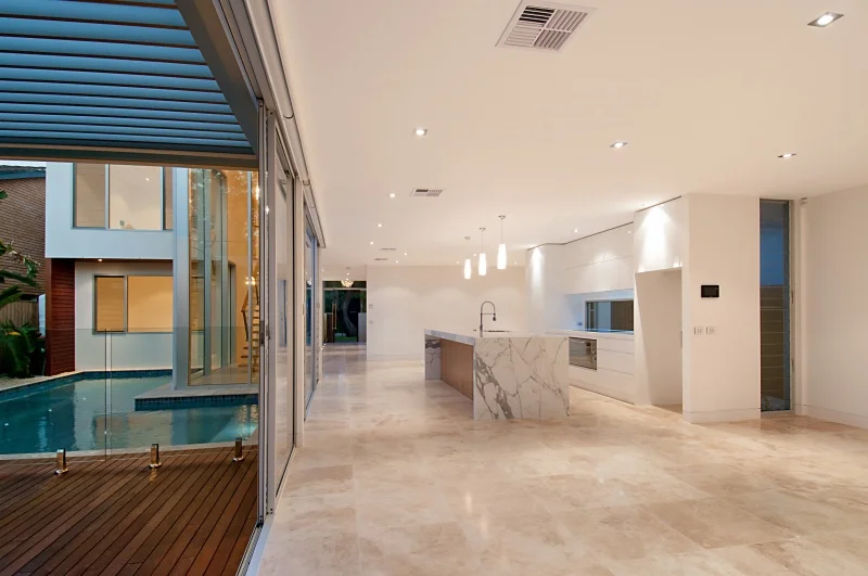 Opposite beautiful North Avoca Beach, this coastal home is the epitome of beach side living. Block work left unrendered adds to the relaxed and unpretentious feel. Large expanses of glass, timber decks and a pool running the length of the block ensure you want to kick your shoes off as soon as you arrive. This home delivers that holiday home feeling all year round.