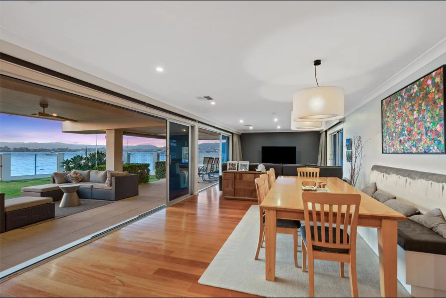 With a spectacular waterfront position, it was clear this family home was long overdue for an update. We relocated the master wing with generous walk-in-robe and luxurious ensuite over a new double garage, forming the additional first floor level. At ground level is the new open plan kitchen with walk-in-pantry, living and dining areas taking advantage of the level access to a covered terrace and incredible backyard with private jetty directly onto Brisbane Water. Incorporating a built-in BBQ area which connects the kitchen to the alfresco, new timber flooring, floor to ceiling windows and stacking sliders as well as a new laundry and guest powder room. The gourmet kitchen with solid brushbox timber bench top wraps around the gorgeous stone prep area and showcases a top of the range white Smeg induction cooktop as well as Sirius roof cassette rangehood. The internal floor plan was reconfigured, allowing for a new additional kids retreat area, 2 new bathrooms, reconfigured bedrooms and internal stair access to the first floor level.